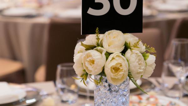 Оформить 30 столов на корпоративе на 300 гостей так, чтобы нумерация была заметной и читаемой, декор выглядел стильно и уютно, не перекрывал обзор и при этом укладывался в разумный бюджет.