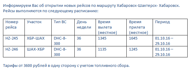 Авиакомпания «Аврора»: Новые рейсы Хабаровск-Шахтерск-хабаровск