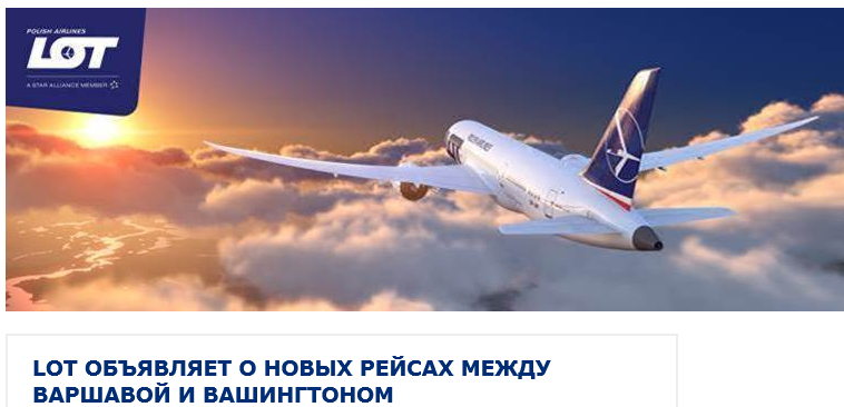 Со 2 июня 2020 года LOT Polish Airlines запустит прямые рейсы из польской столицы в Вашингтон. Это будет 10-й маршрут польского флагманского авиаперевозчика, соединяющего Польшу и США. Рейсы в столицу США будут выполняться три раза в неделю на Boeing 787 Dreamliner.
