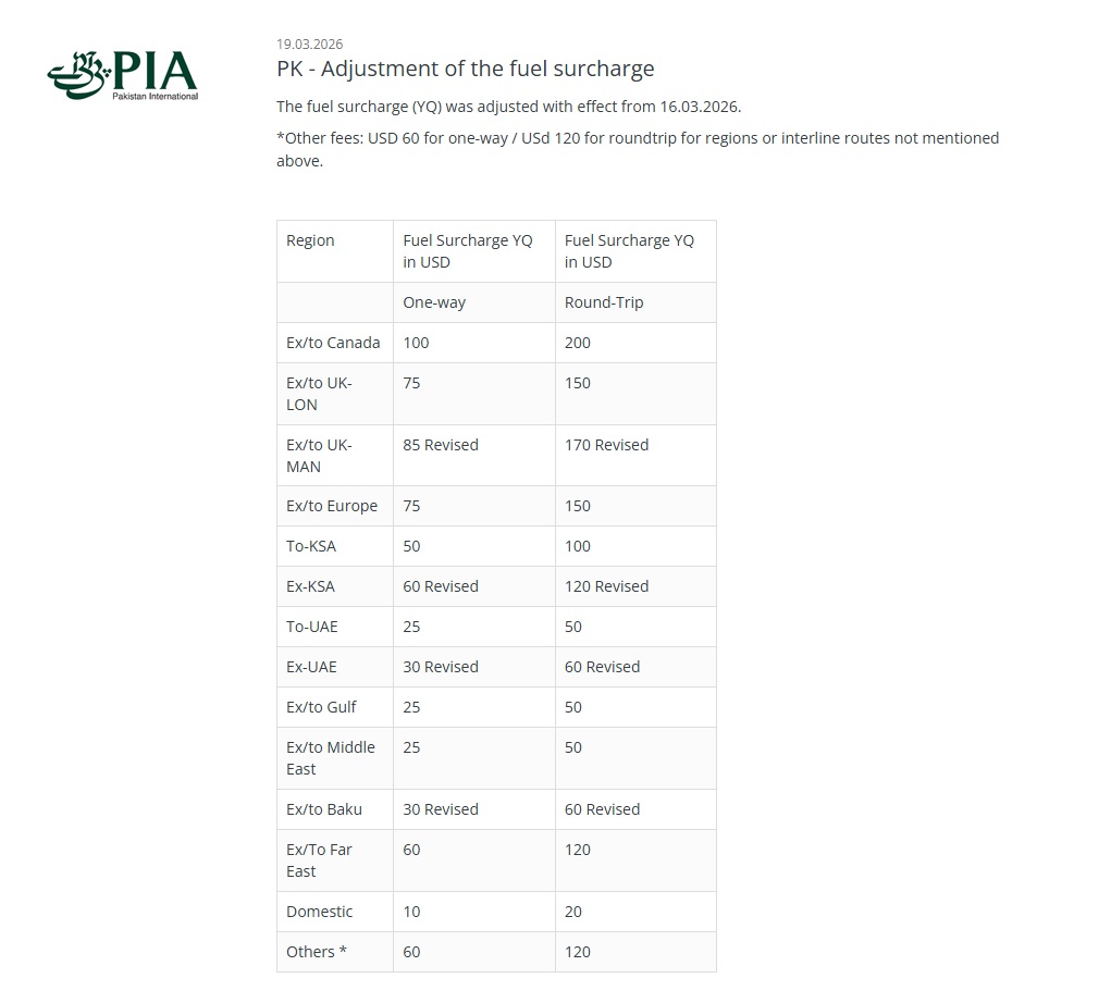 Pakistan International - PK (214). BSP DE. Изменение величины топливного сбора